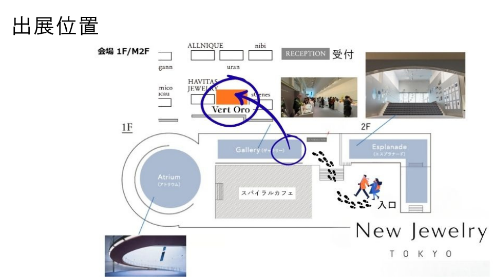 「New Jewelry Tokyo 2025」期間中は、ありがたいことに昨年と同様1階「ギャラリー(Gallery)」エリアの会場受付カウンター(Information)斜め前に出展致します。